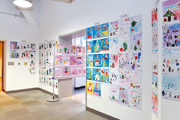 図館市内の幼稚園や保育園の園児による、クリスマスをテーマにした絵画を展示します。