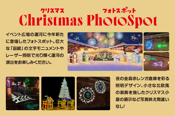 巨大な「函館」の文字モニュメントやレーザー照明で光り輝く運河の演出をお楽しみください。