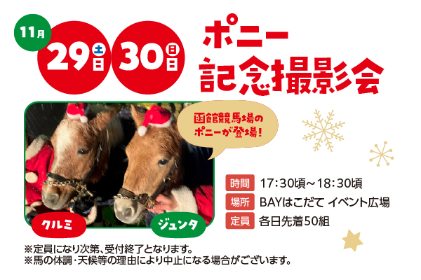 函館競馬場のポニー「ジュンタ」と「クルミ」が登場!ポニーと記念撮影しよう!