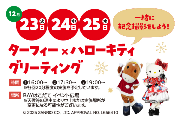 人気のハローキティとJRAマスコットキャラクター「ターフィー」が登場!