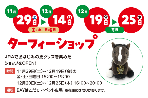 JRAでおなじみの馬グッズを集めたショップをOPEN!函館でターフィーショップのグッズを購入できるのは夏の函館競馬の開催時期とこの期間だけ!