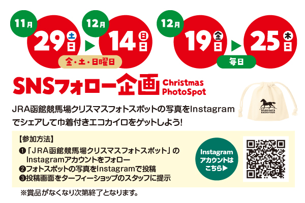 ❶「JRA函館競馬場クリスマスフォトスポット」のInstagramアカウントをフォロー