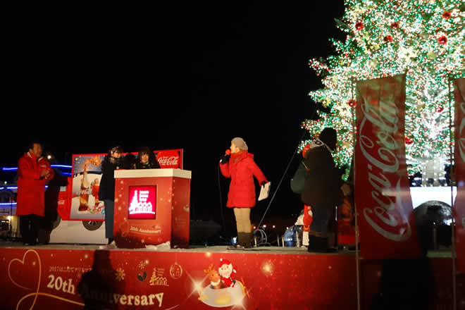 点灯後のステージでは、コカ・コーラの早飲み大会が行われました。