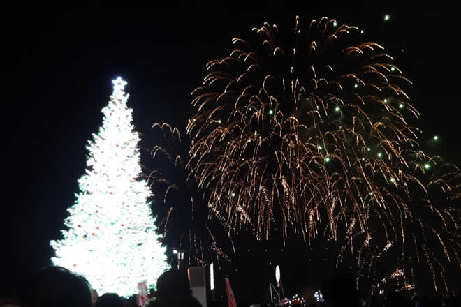3、2、1、「ハピネス!」の掛け声とともに点灯。花火が打ち上がりました。