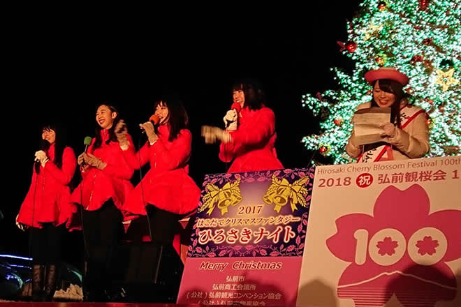 青森のご当地アイドル「りんご娘」のライブや弘前クイズ大会が行われました。