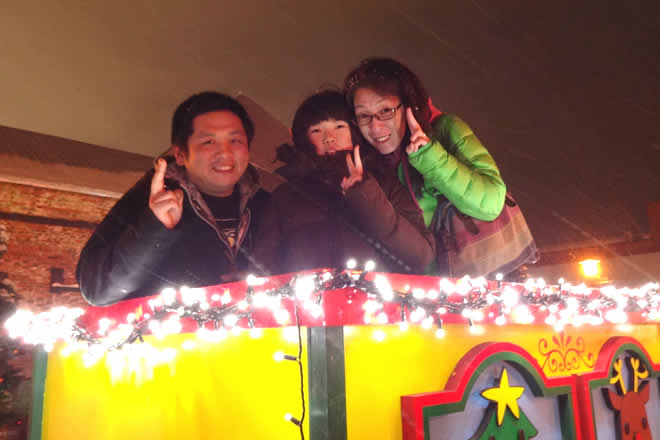 本日、点灯者に選ばれた幸運な方は、登別からお越しの親子さんと彼氏さんです。