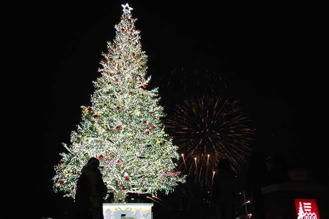 トップスターまで伸びた光が段々と降りていき、ツリーが光で染まっていきます。