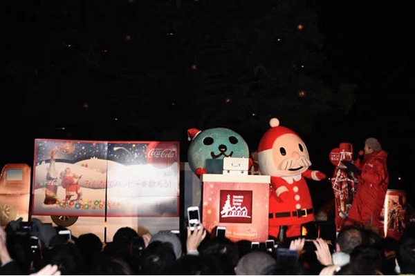 コカ・コーラに関する「○×クイズ!」の後、Qoo(クー)とサンタのニッキーがツリーを点灯。コカ・コーラの早飲み大会「Drink!Coca-Cola」も行いますので、ぜひご参加ください。