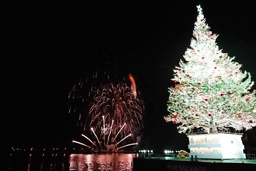 ステージ上でカウントダウン後、トップツリーから点灯していきます。